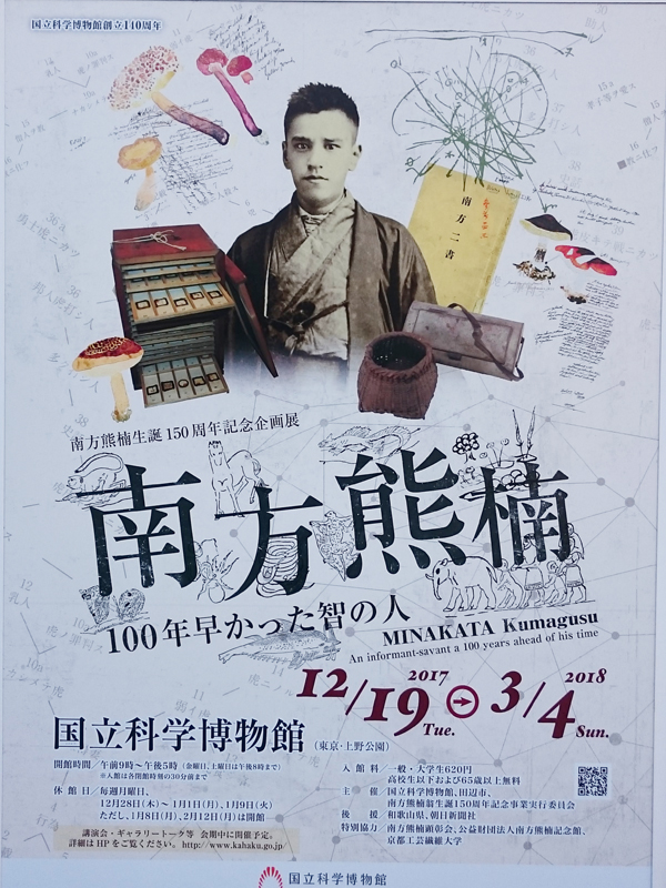 20180209ミュージアム:南方熊楠生誕150周年記念企画展「南方熊楠100年早かった智の人」MINAKATA Kumagusu An informant-savant a 100 years ahead of his time 国立科学博物館・日本館1階企画展示室 2017.12.19.-2018.3.4.